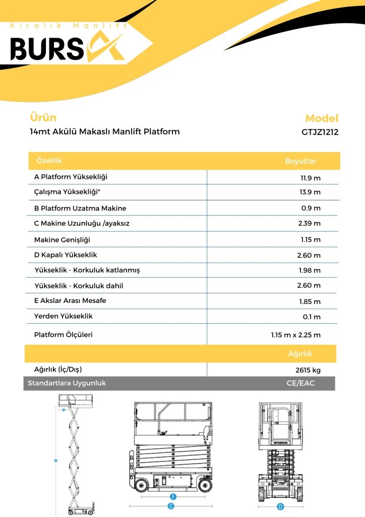 14 metre AKÜLÜ MAKASLI PLATFORM BURSA MANLİFT