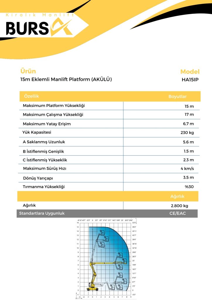 15Mt Akülü Eklemli Manlift Platform HA15IP Haulotte Bursa